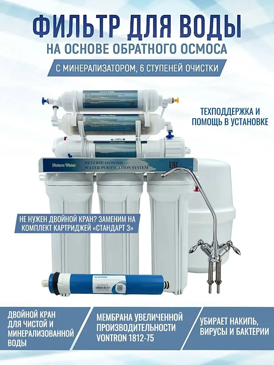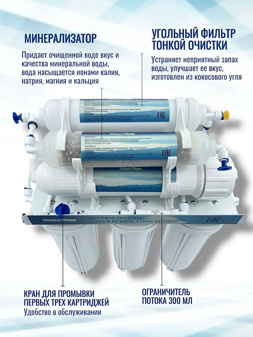 Система обратного осмоса Nature Water 7 с Минерализатором, 6 ступеней