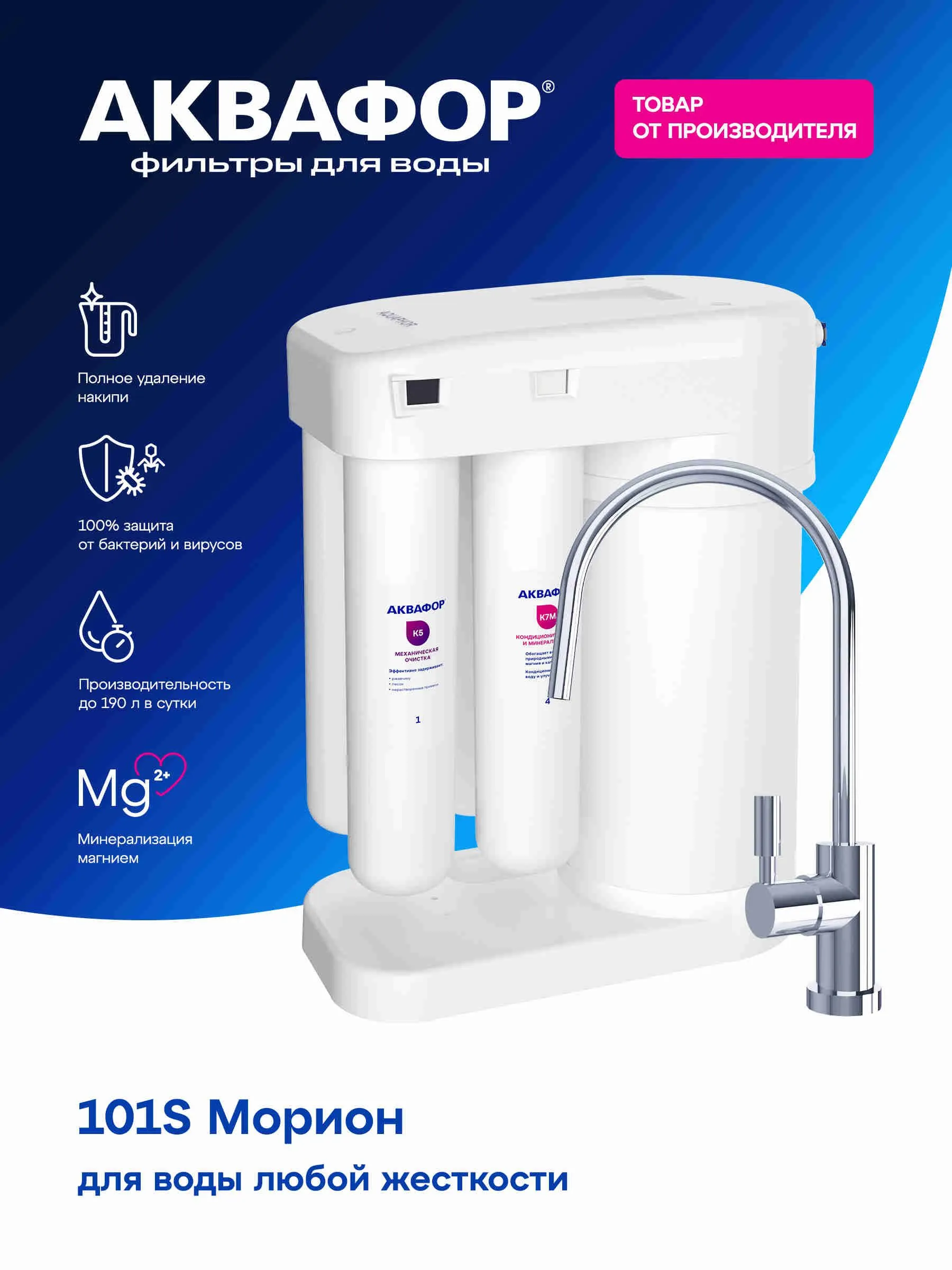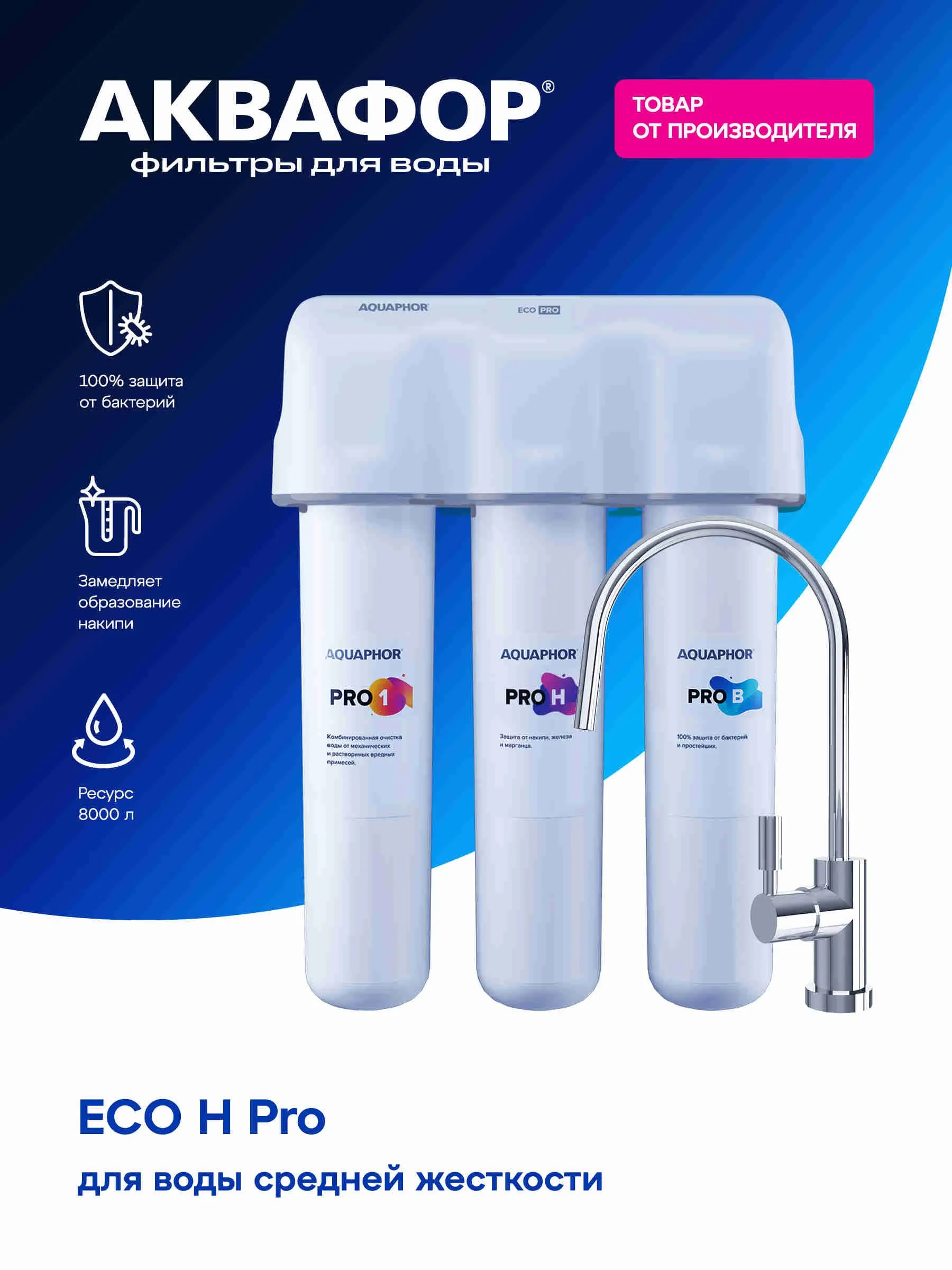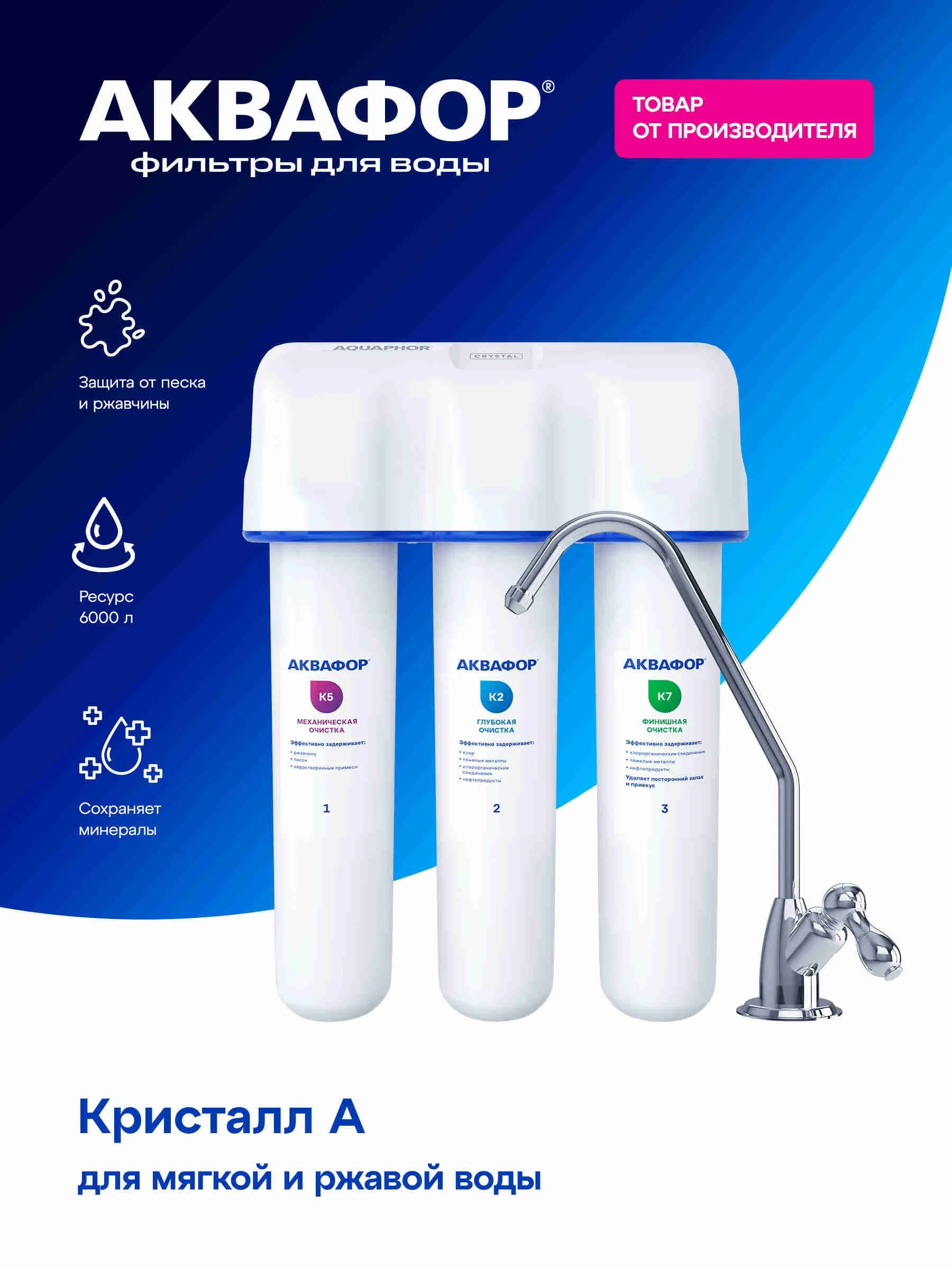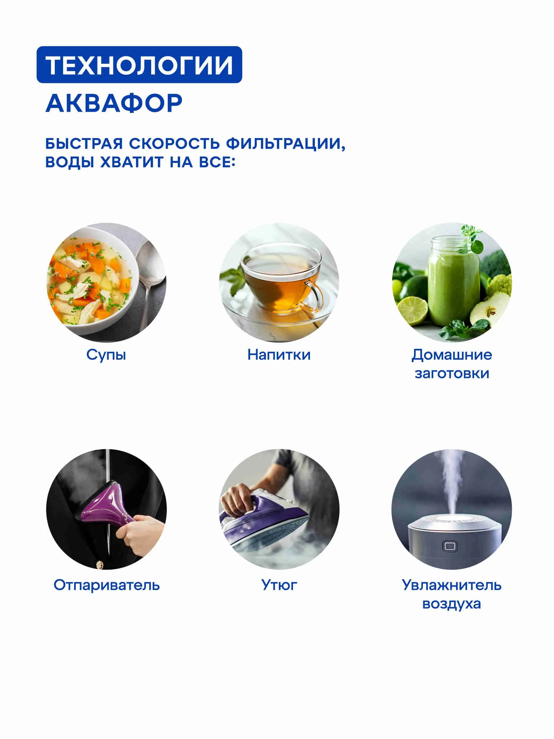 Грубая очистка, Очистка и минерализация воды, Удаление бактерий, Удаление хлора, Смягчение воды, Тонкая очистка, Удаление железа, Понижение окисляемости, Удаление аммония, Удаление марганца, Удаление сероводорода, Насыщение воды кальцием, Насыщение воды магнием, Удаление механических загрязнений, Удаление органических веществ, Устранение привкусов и запахов